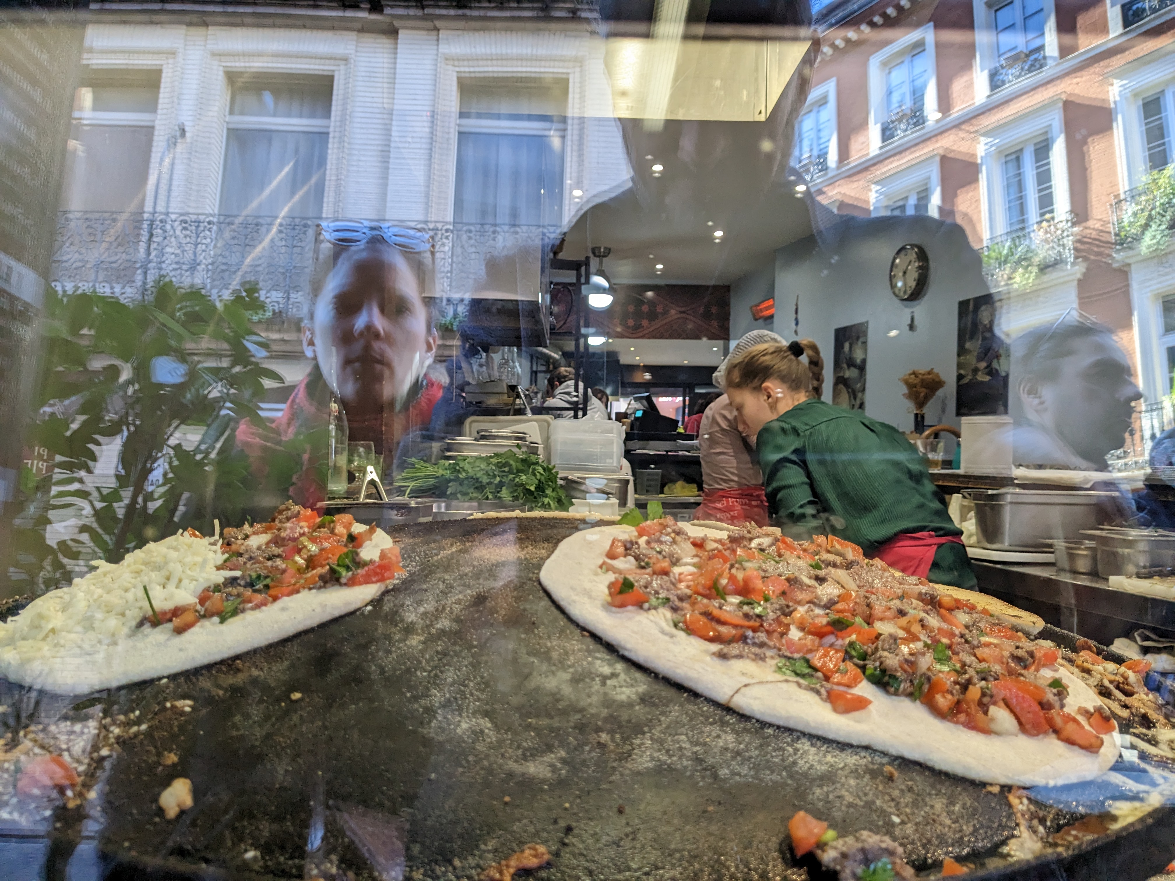 Un petit restaurant qui ne paye pas de mine. Mais ça reste une référence de Toulouse ! La galette est cuisiné devant vous, sur un four traditionnel SAJ. Le pain était moelleux, souple tout en étant bien cuit. Il n'y a quelques tables a l'intérieur, il vous faudra probablement prendre à emporter. Il y a parfois un peu de queue devant. Lieu idéal pour les végétariens !