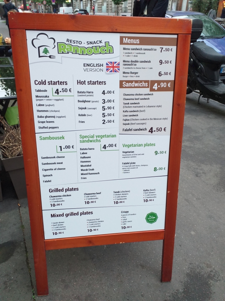 bon restaurant de spécialités et sandwiches libanais halal. a recommander. les sojoks y sont tres savoureux