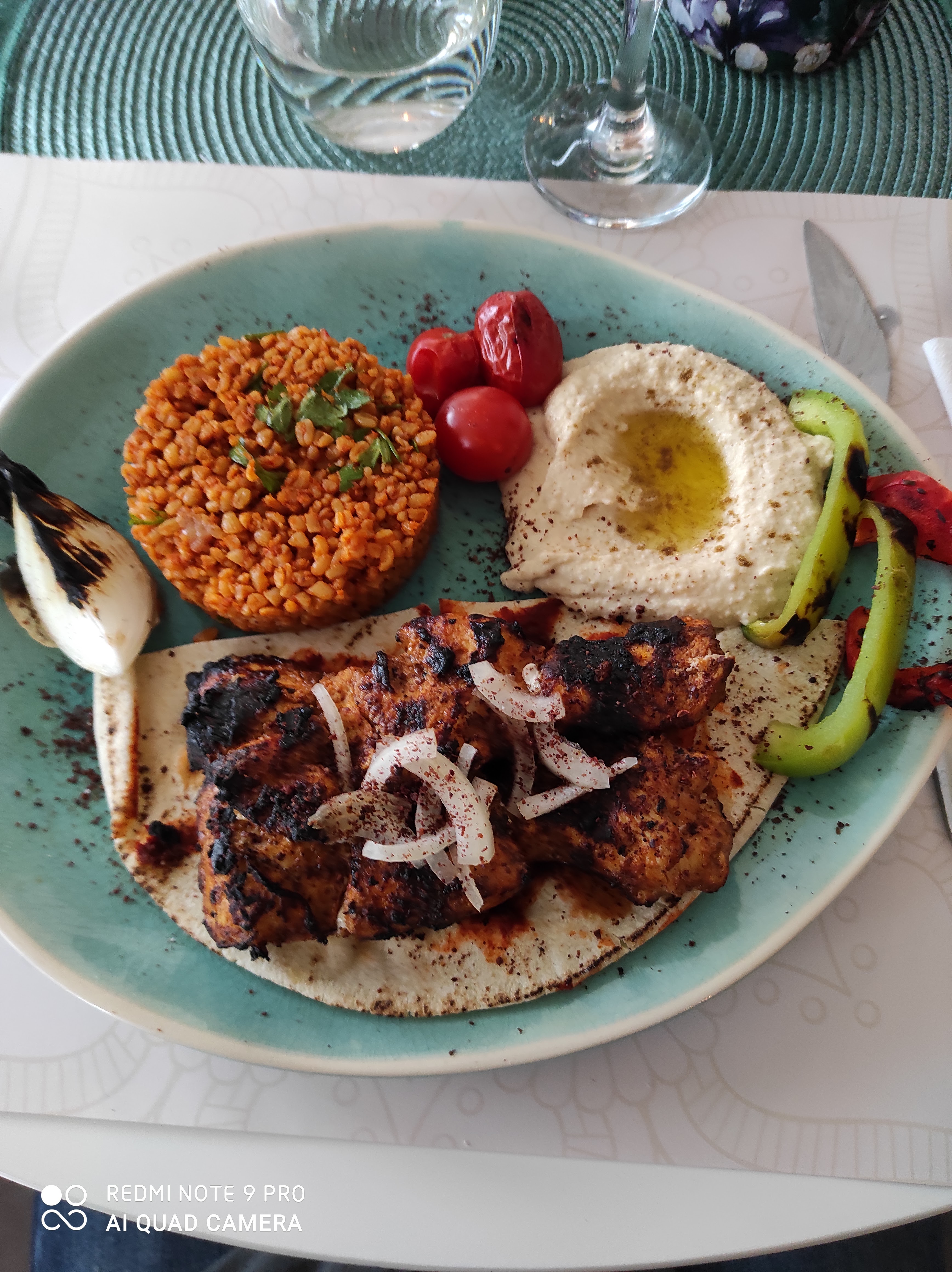 Le restaurant est situé face à l'Office du tourisme de Capdenac gare en plein Centre ville. La décoration est simple et la salle très lumineuse. Le midi la formule du jour entrée plat dessert et café est à 18€. L'entrée est constituée de 3 boules de fromages aux parfums différents manque un peu de diversité. Le plat de brochettes de poulet mariné, humus et boulgour est bien servi. Dessert de baklavas bien goûteux. Service agréable et Ultra rapide .... À peine le temps de finir l'entrée que le plat arrive!