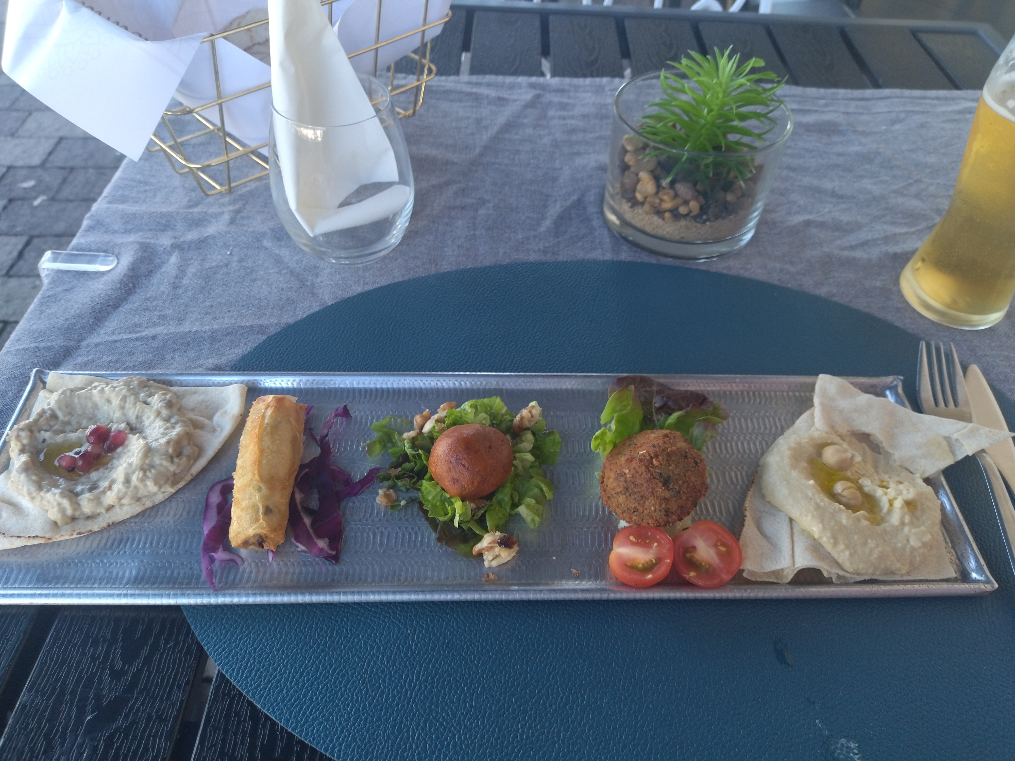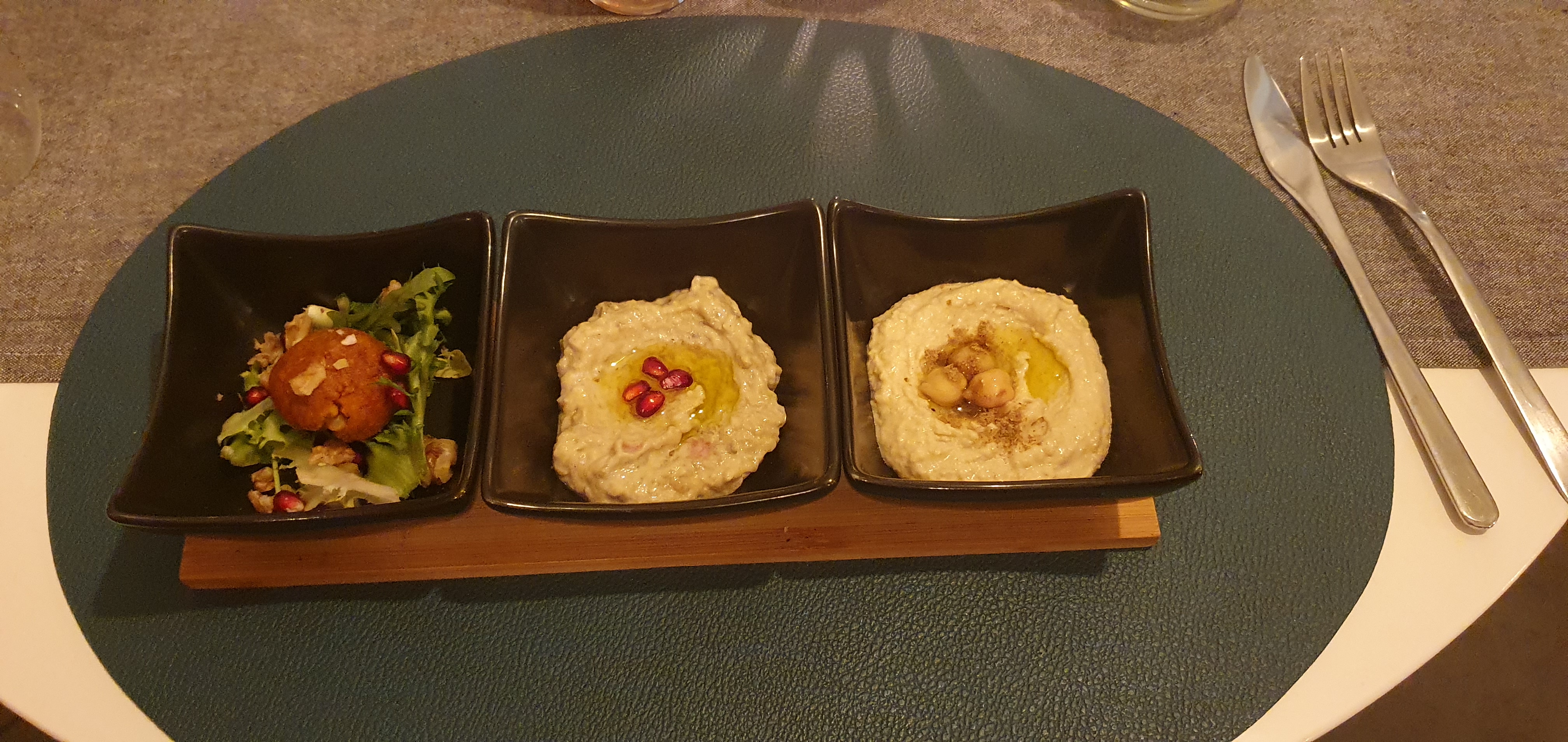 Nous avons trouvé le repas très bon mais de trop petites quantités. Un pain libanais serait le bienvenu. Les desserts à la carte sont trop onéreux.. 6.50e les 4 petits gâteaux c est excessif. Sinon c etait délicieux.. Et le petit serveur est au top. Une remarque tout de même : en cuisine des cheveux attachés sont plus hygieniques