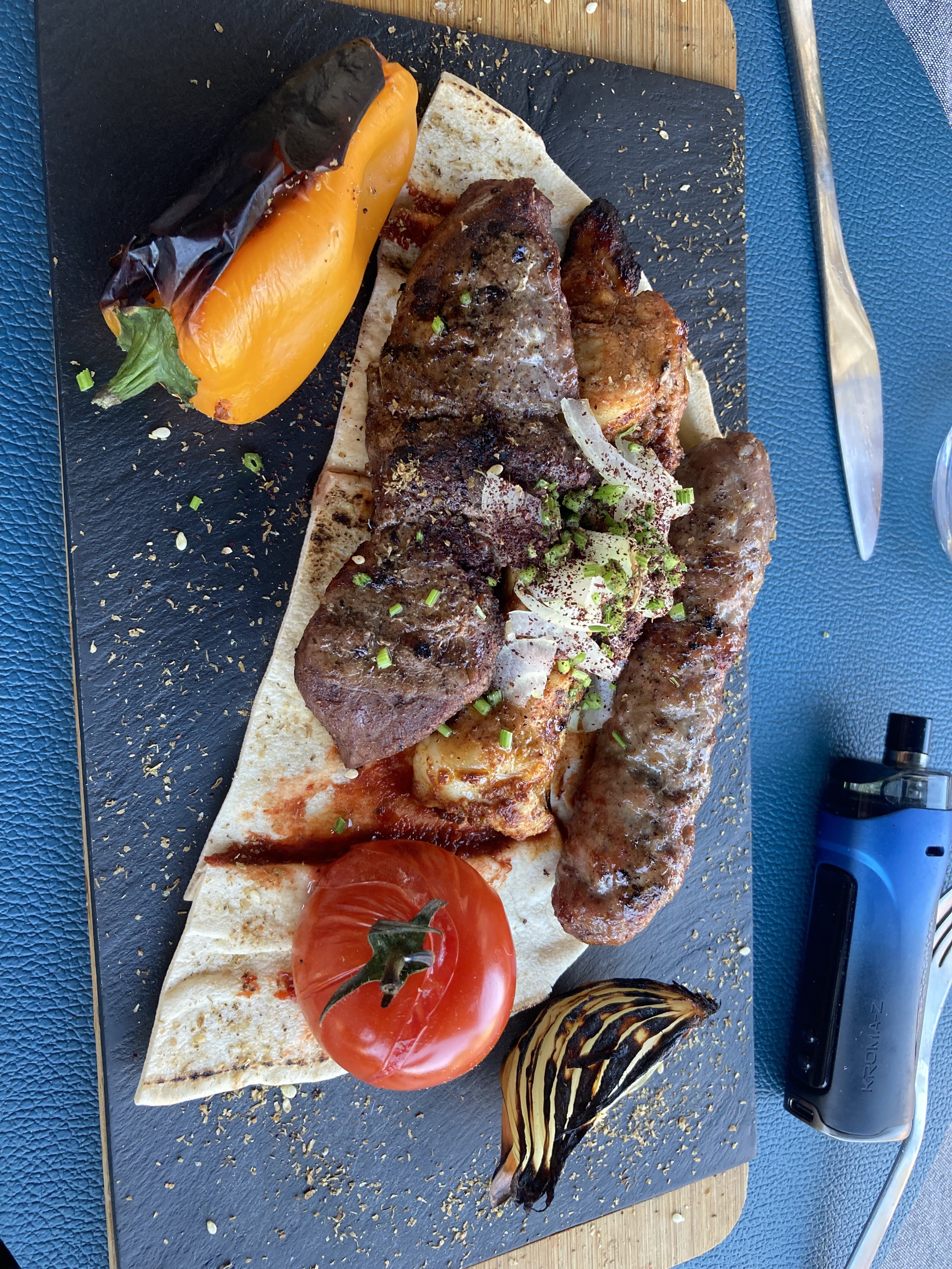 Nourriture délicieuse - mèze chaud et froid, tous incroyables. Le propriétaire et sa femme étaient très charmants et accueillants. J'attends déjà avec impatience ma prochaine visite : )