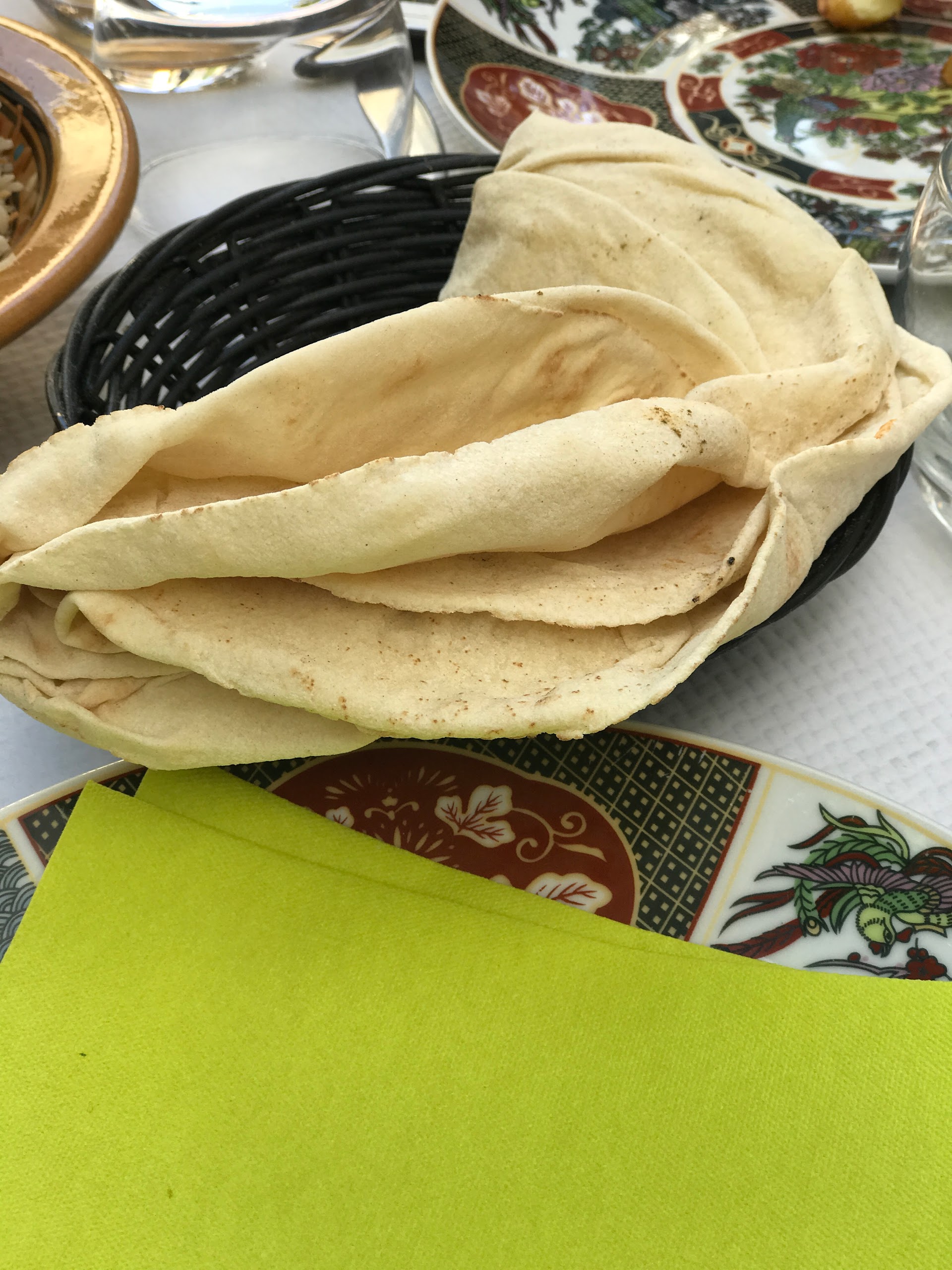 Nous avons pris brochettes de boeuf et kefta accompagnés de houmous et moutabal. Et baklava avec du thé à la menthe pour finir sur une note sucrée. Nous nous sommes vraiment régalés. Seul bémol sont les moustiques. Il y en avait vraiment beaucoup.