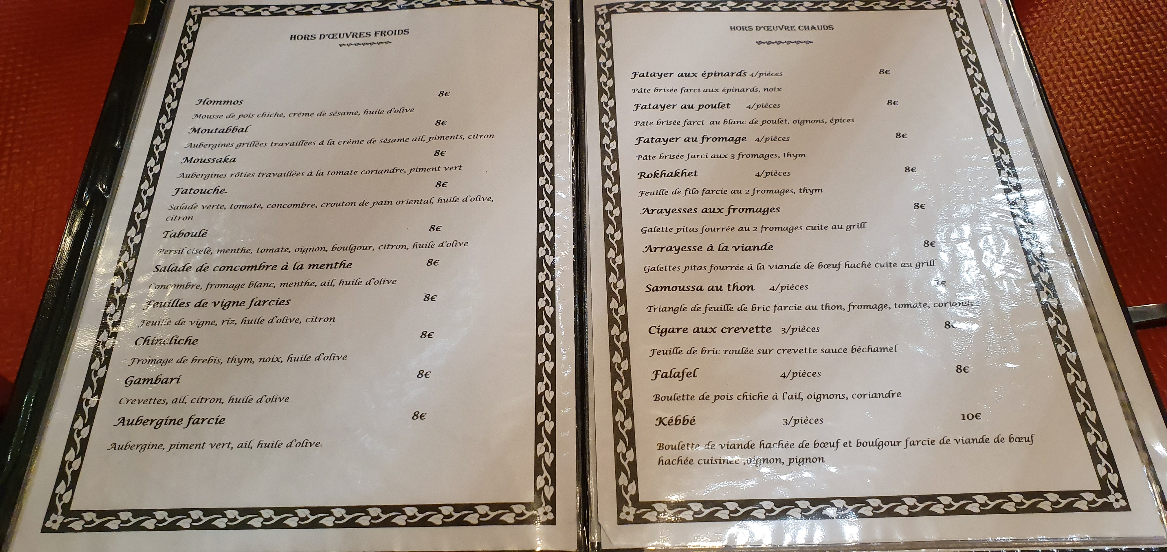 Un tout petit restaurant à l'ambiance intime avec une cuisine variée et un large panel des goûts et saveurs du liban. Ali, le patron et chef fera tout pour vous être agréable donc laissez vous conseiller et vous ne le regretterez absolument pas. Pour ceux qui connaissent déjà la gastronomie libanaise, ils seront content et satisfait de retrouver ici les saveurs authentiques d'une cuisine familiale. Je vous invite à le vérifier par vous-même.