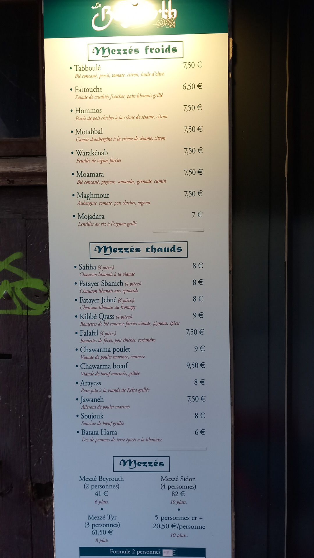 Si vous cherchez un restaurant accueillant vous pouvez vous arrêter au Beyrouth La serveuse est dans le partage la gentillesse la description des plats et l'humour Sans oublier la cuisine qui dépayse le vin est pas mal non plus Merci pour ce moment