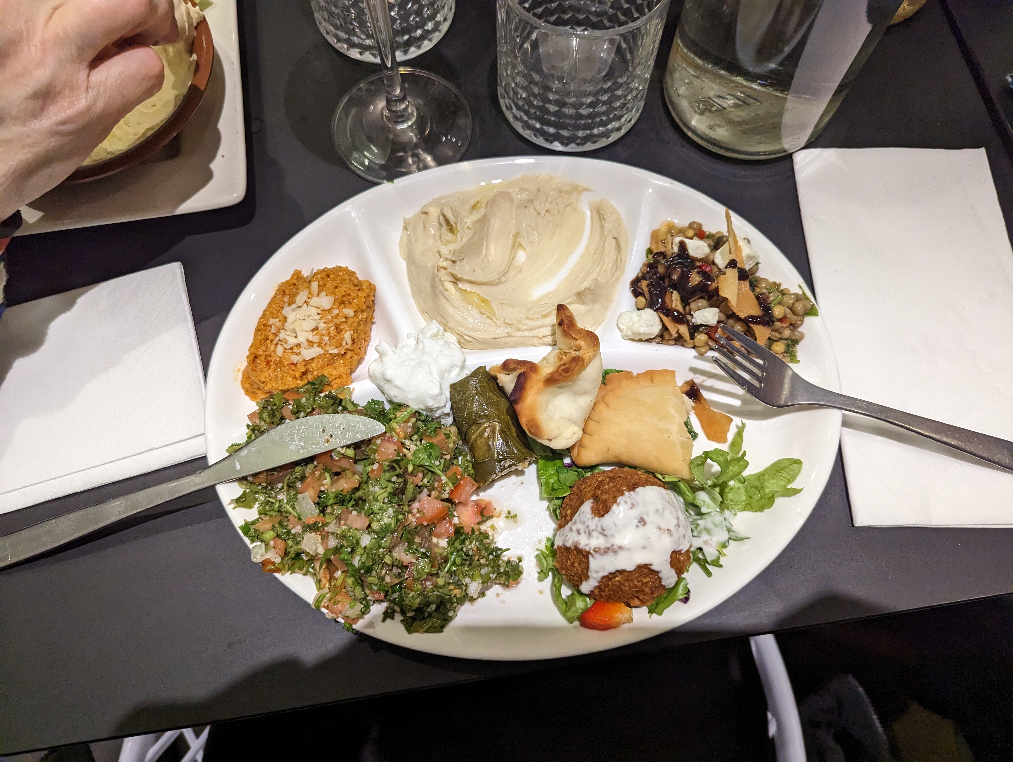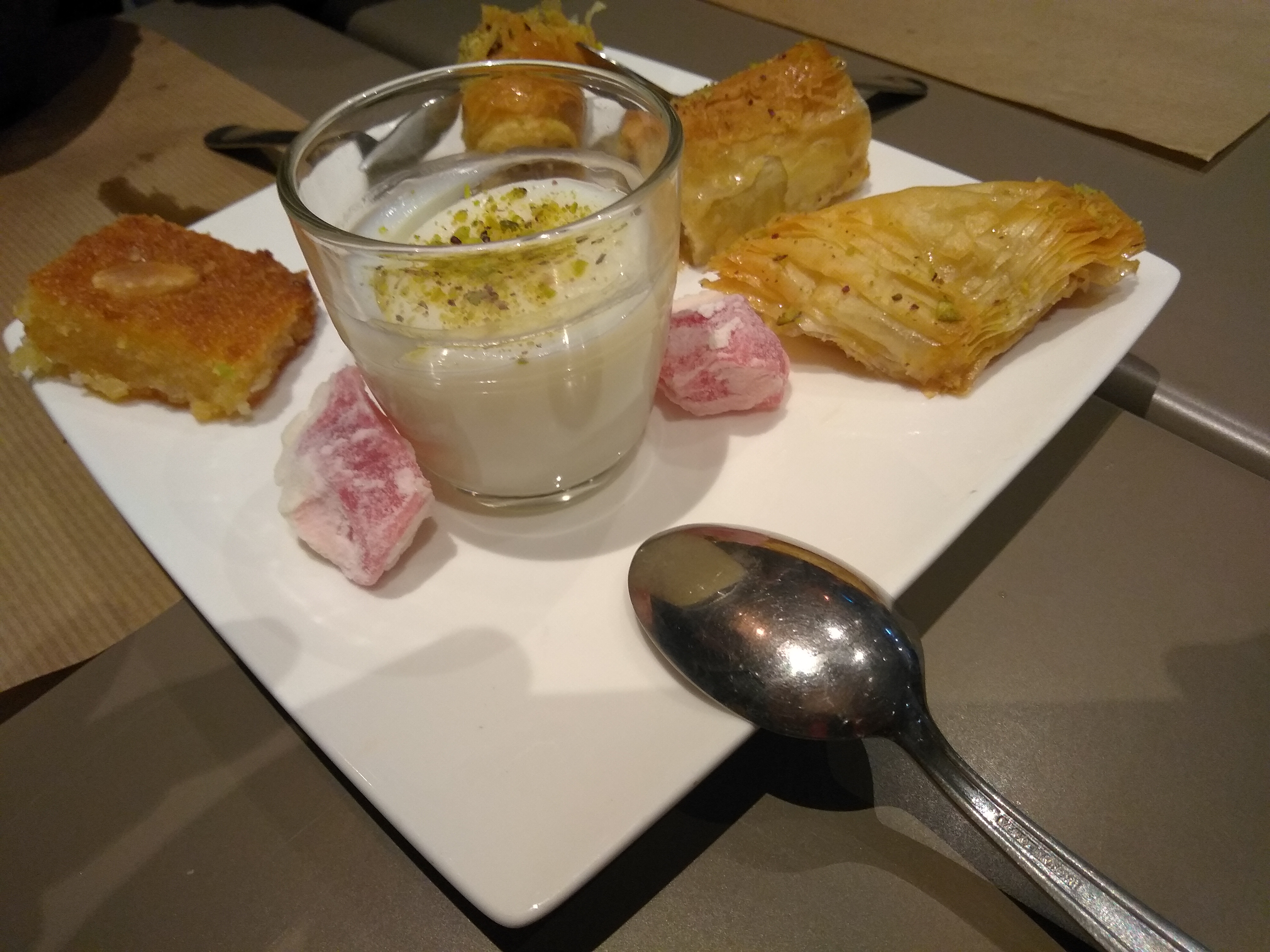 Belle découverte ! Première fois dans un restaurant libanais et j'ai beaucoup aimé. Nous avions pris l'assortiments de 10 mezzes et tout était vraiment bon ! Parfait pour découvrir la cuisine libanaise. Pour finir les desserts étaient excellents ! Je recommande.