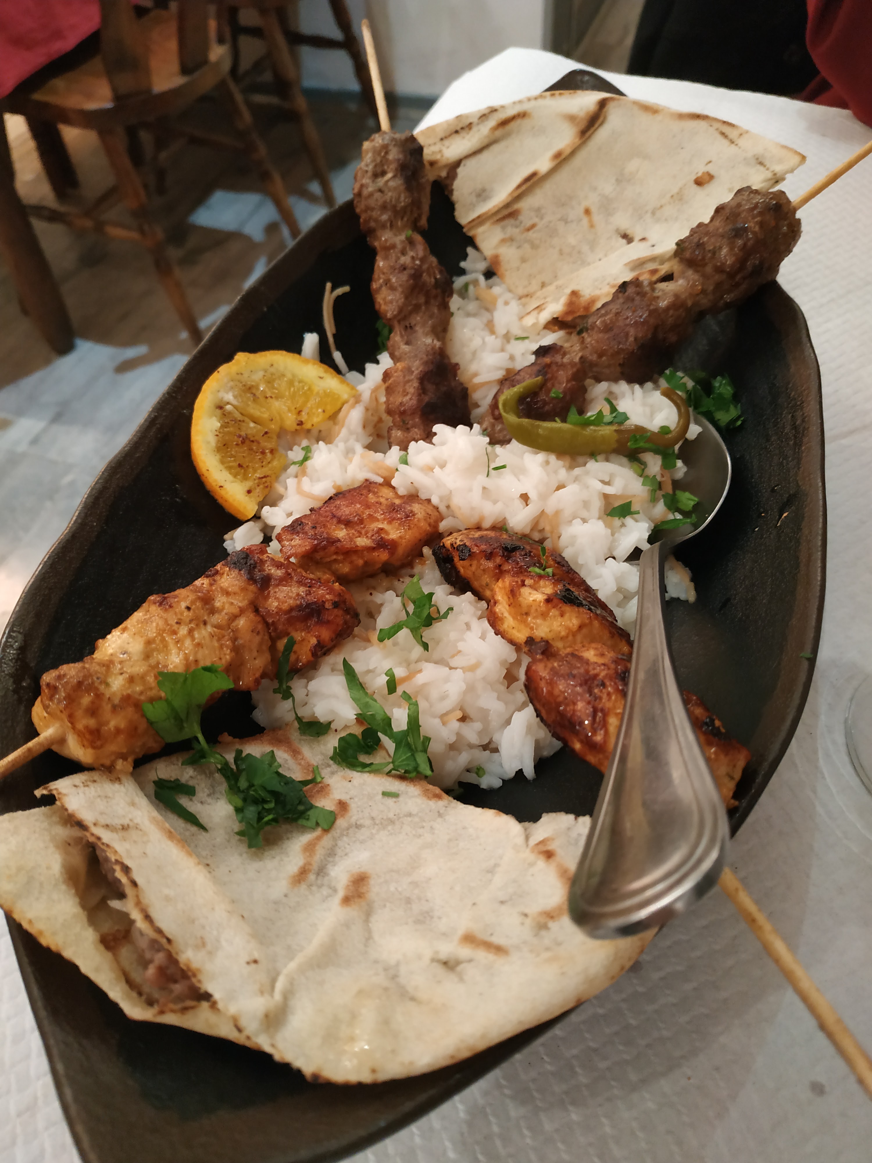 Délicieux, pas trop cher et bien copieux, surtout le menu découverte. Quant aux brochettes d'agneau, mon dieu c'est une vraie tuerie ! Même leurs pâtisseries sont bonnes, moi qui ne suis pourtant pas fan de ce genre de gâteaux toujours très sucrés. Bref je recommande.