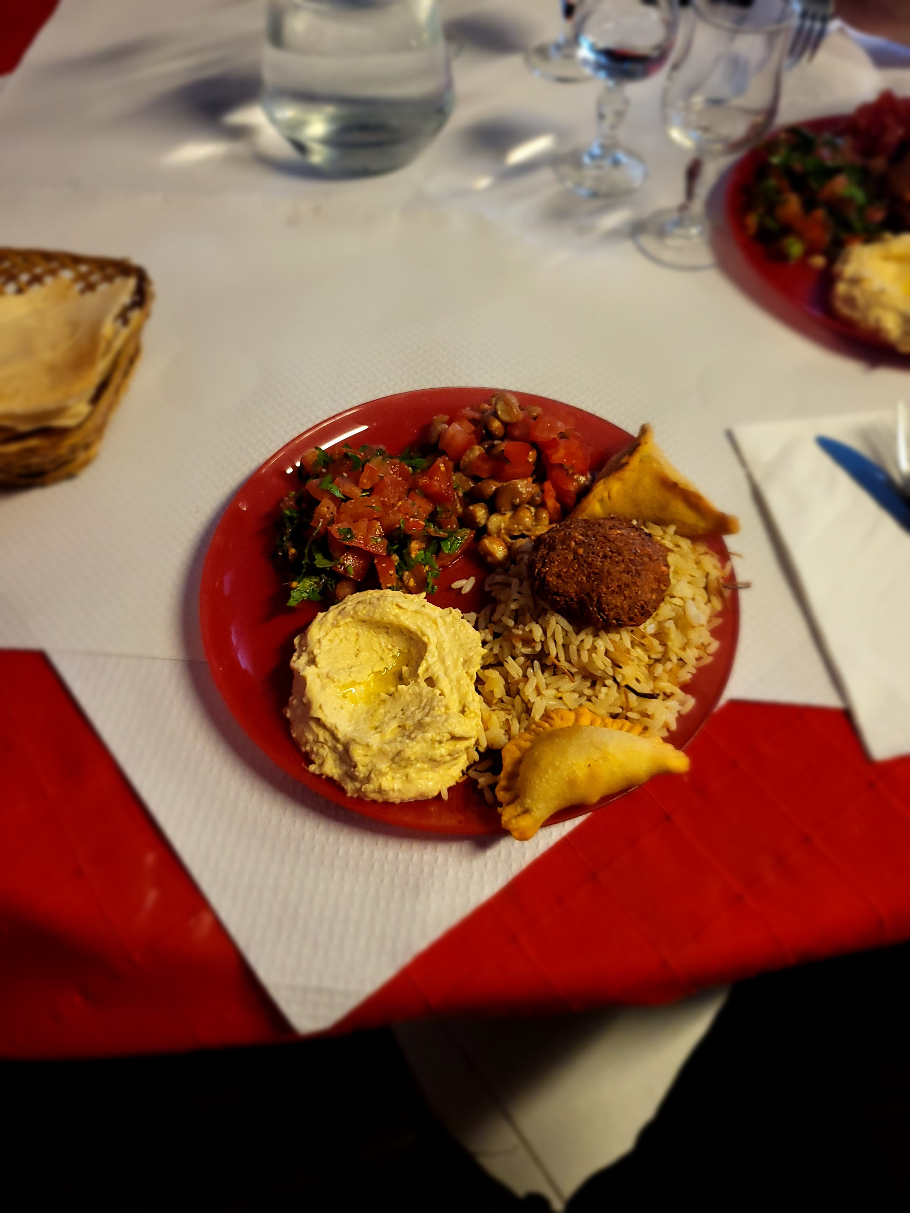La salle est intimiste, j'ai beaucoup aimé la décoration aux murs, elle fait voyager. L'assiette végétarienne à compléter au choix était très bonne. Service rapide, et serveuse très souriante. Je recommande ce restaurant libanais :)