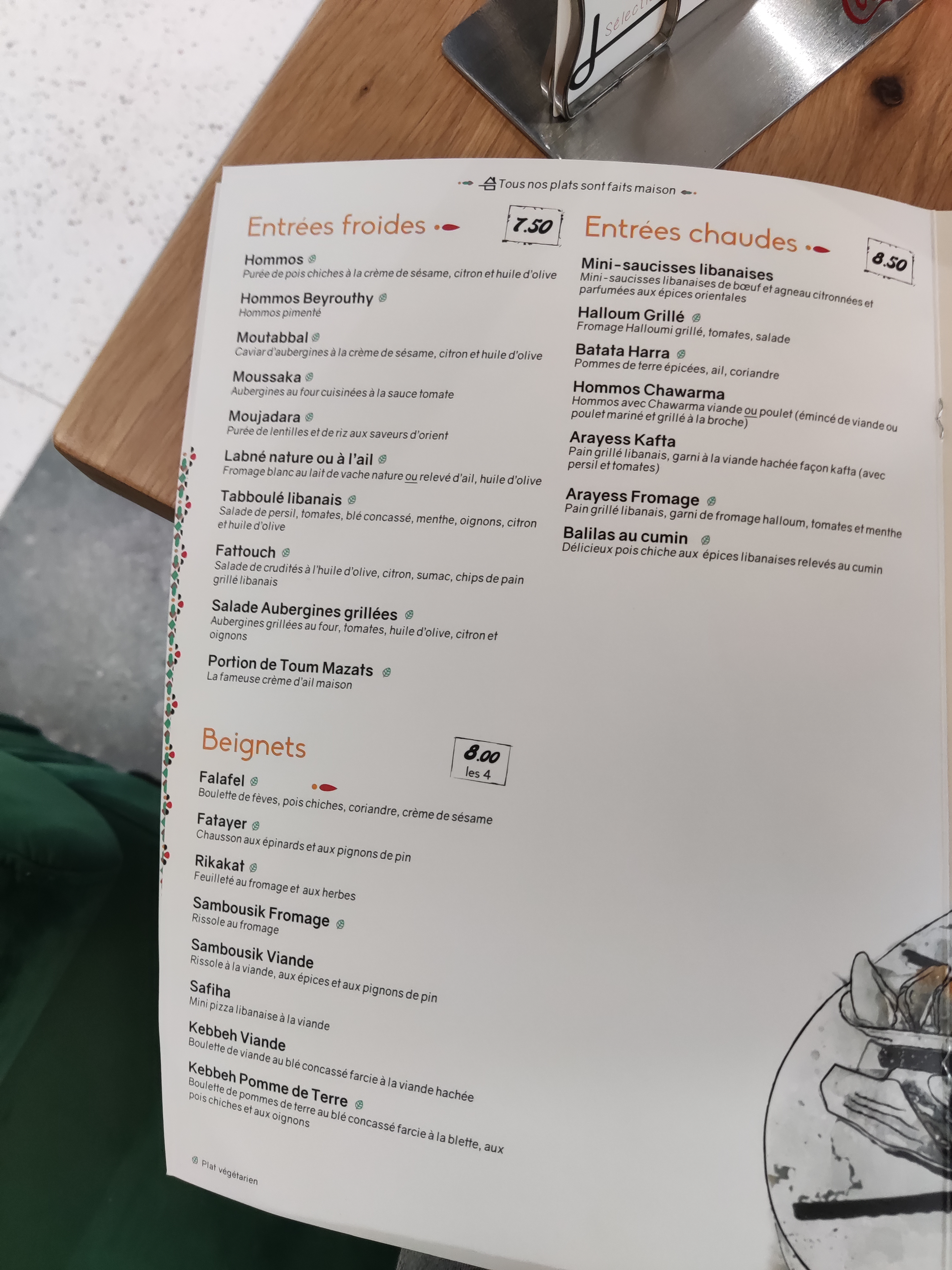 Un vrai délice. Je ne connaissais pas les spécialités libanaise et j'ai été très agréablement surprise tant par les saveurs que la variété des plats proposés. L'équipe du restorant m'a bien accompagné dans choix des plats avec des explications claires sur le contenu des mets proposés. La cuisine est maison et la présentation soignée. Le service est rapide et très agréable.Très bonne expérience je recommande.