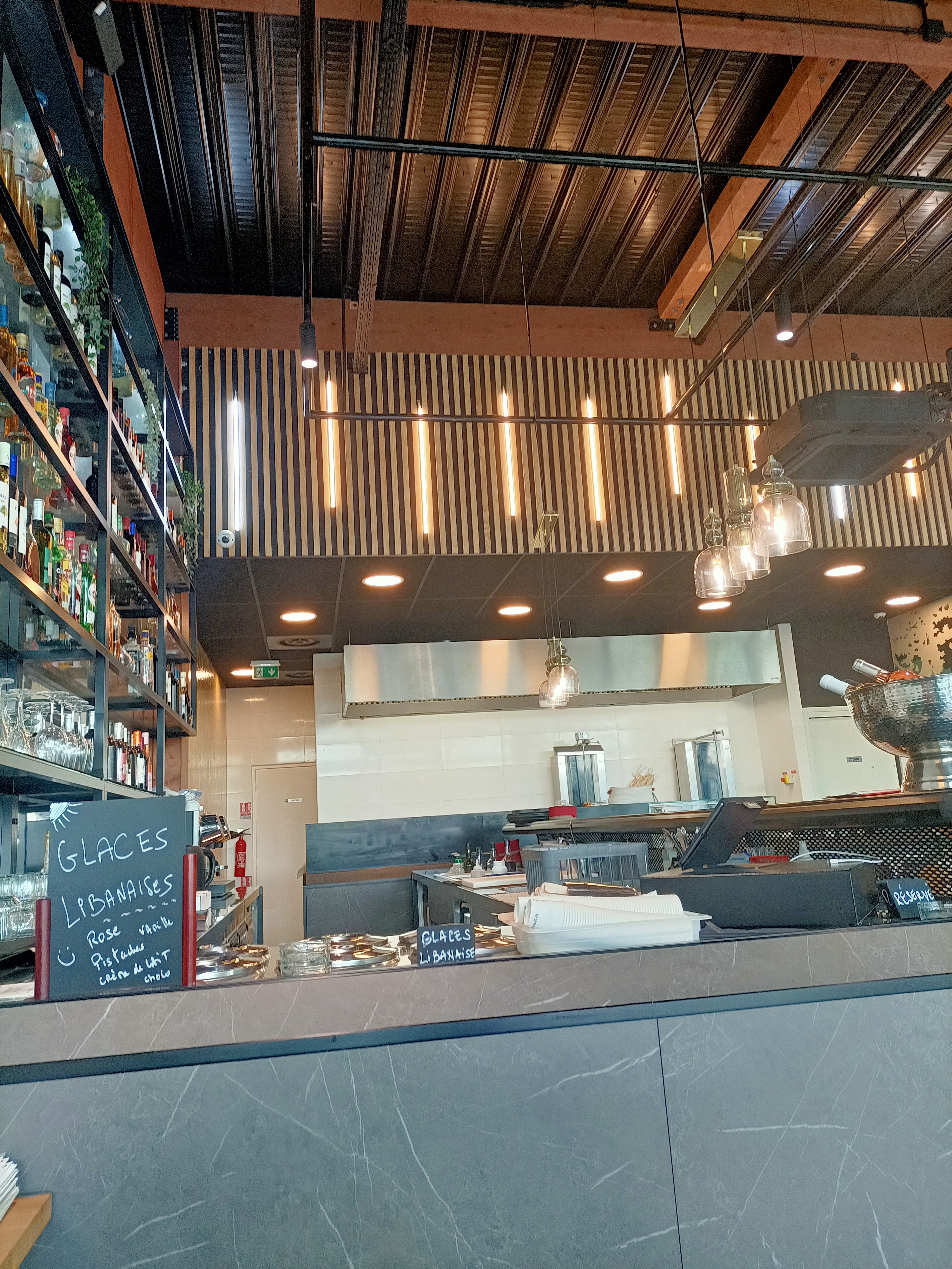 La décoration est très agréable. En revanche il fait un peu froid. Accueil à revoir : aucun conseil, pas de sourire. Je n’ai pas été conquise par les plats : hoummous, labné et chawarma. Pour la qualité des plats, j’ai trouvé ça onéreux. Je ne pense pas que j’y reviendrai