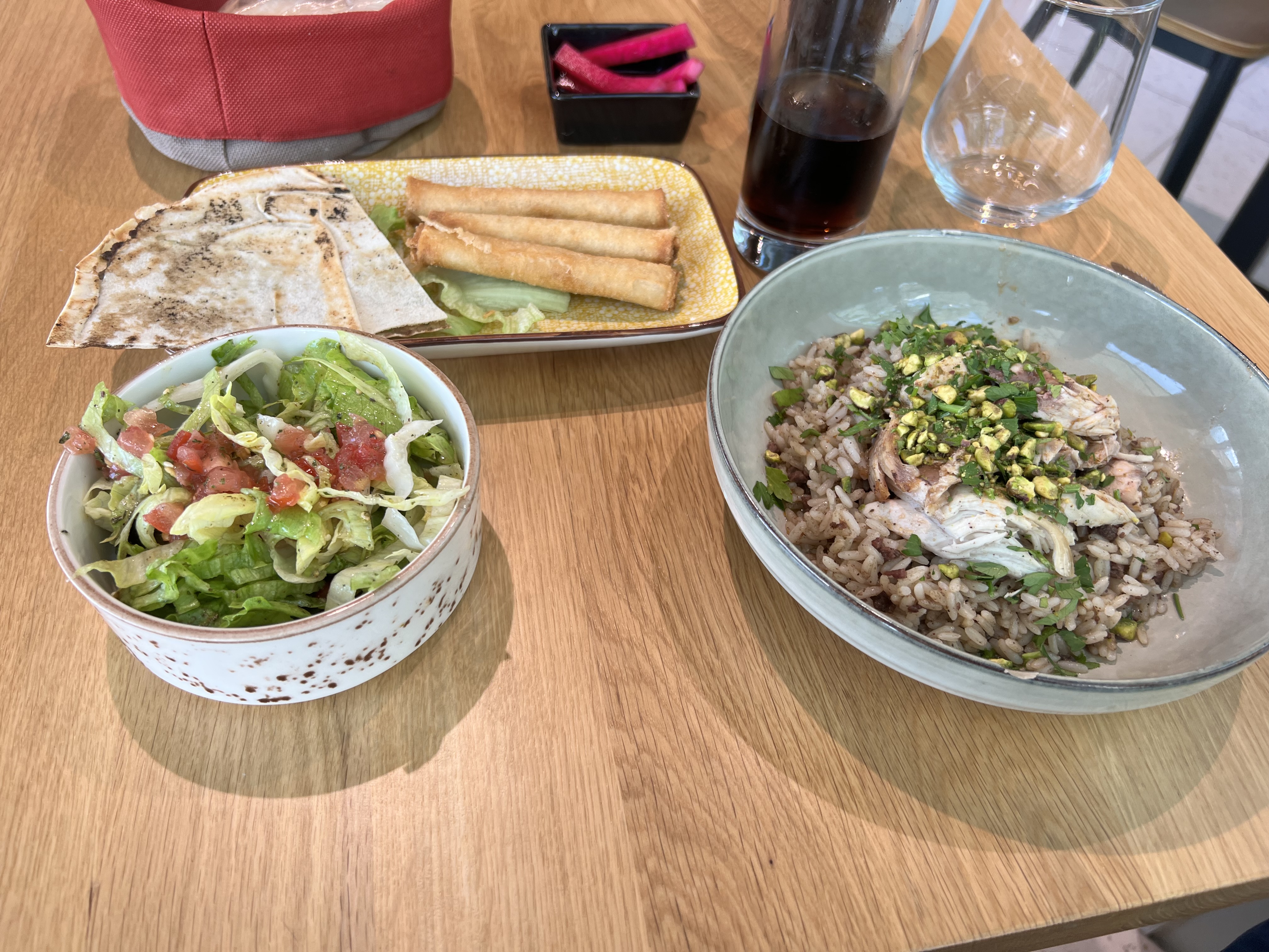 Un repas délicieux en terrasse : du choix, des produits frais, un taboulé et une chawarma à tomber ! Le personnel est très gentil et de bon conseil. Je recommande