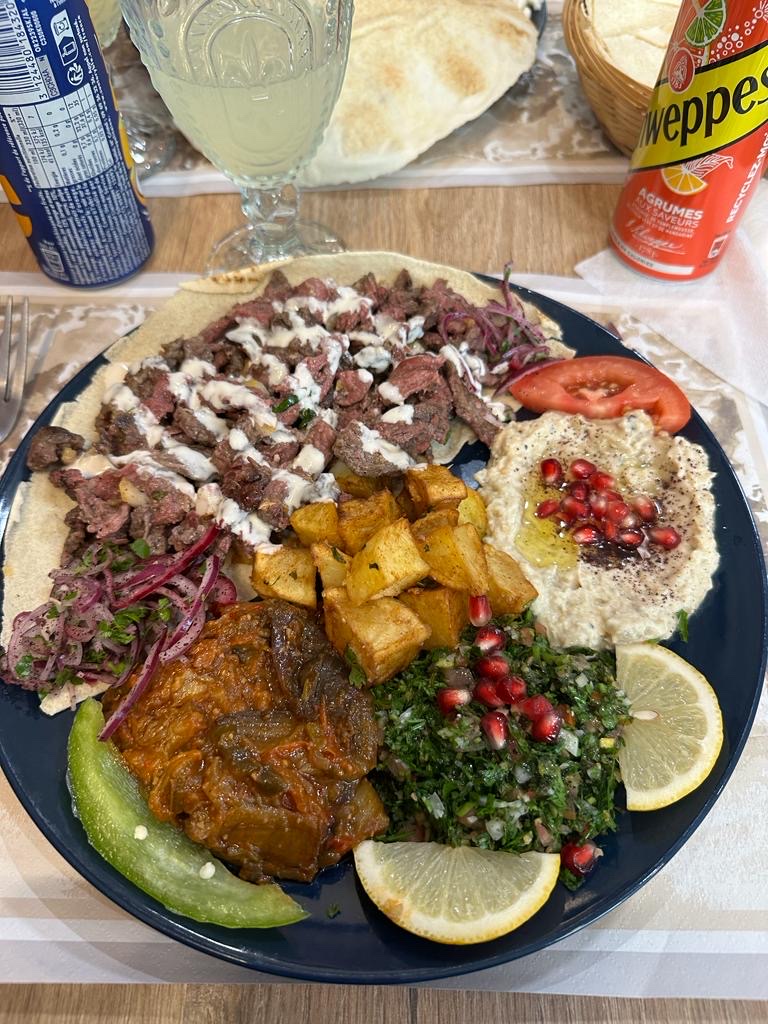 Bonjour, c’était une cuisine très savoureuse avec les attentes d’un bon libanais avec de la quantité. Une amélioration que doit apporter le restaurant pour éviter le quiproquo, nous étions 3 à table à manger sur place et nous avons commandé 4 mezze et je souhaitais commander un « sandwich » shawarma (7€). Et dans un quiproquo j’ai eu une « assiette » shawarma (17€) et apparemment si vous mangez sur place il est impossible de commander un sandwich. Or ce n’est notifié nulle part que le sandwich est uniquement à emporter. J’espère que mon commentaire pourra aider à cette précision, si bien entendu ce détail ne soit pas rendu plus clair pour la clientèle nouvelle.