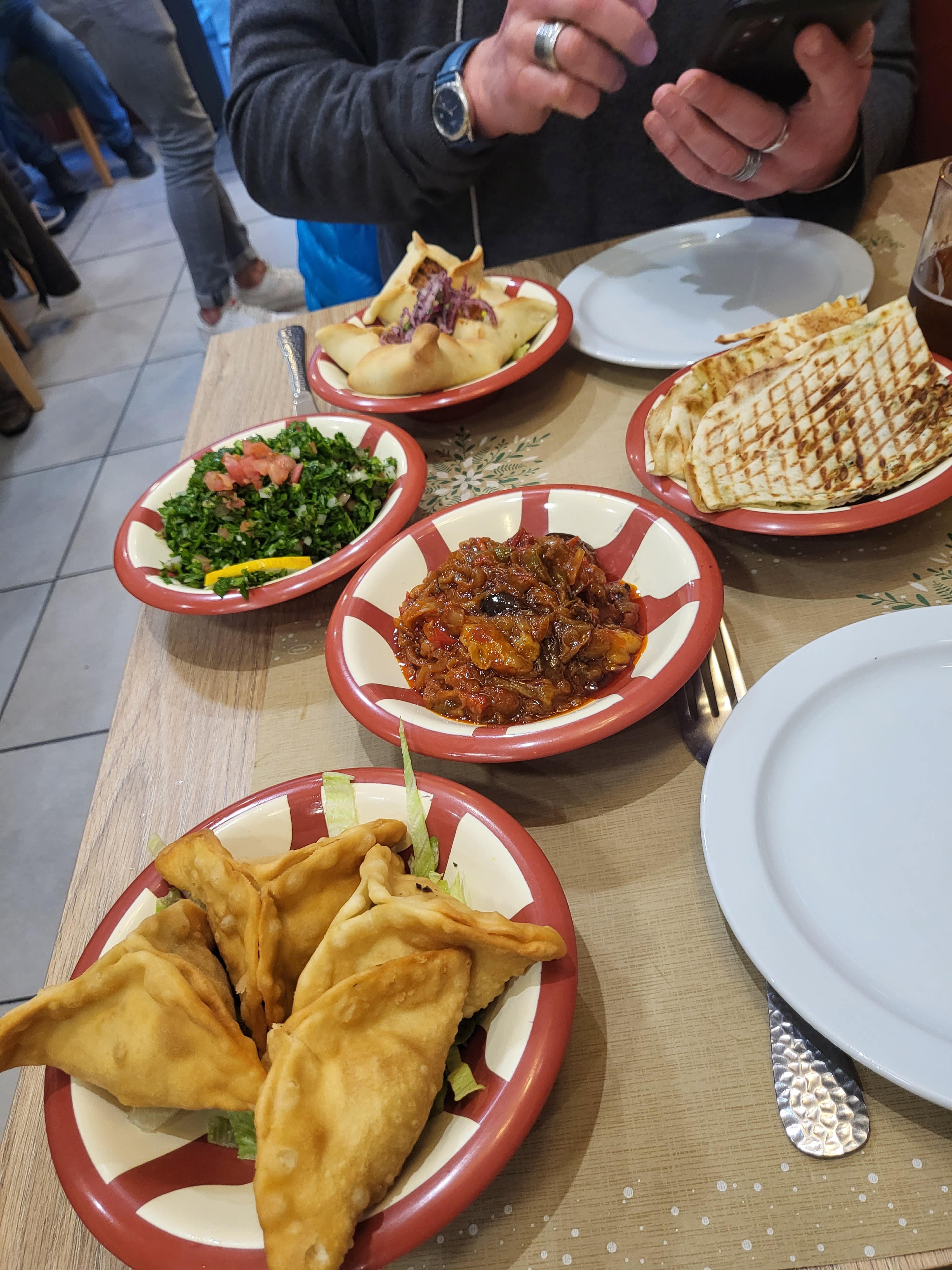 L’expérience était très agréable et délicieuse . Le lieu est assez petit mais le patron est particulièrement sympathique et souriant. Nous avons pris une formule pour 4 etant 3 : 6 mezzes chauds ,6 mezzes froids ainsi qu’un dessert. Autant vous dire qu’avec des portions aussi généreuses la table était recouverte de nourriture et d’odeur incroyables, et nous avons ramené chez nous ce qu’il restait. Le labne, les Sambousseks viande/fromage et le kellege fromage étaient particulièrement bons ! Petite déception cependant sur les rikakats et le chanklich, le premier étant trop salé et le deuxième trop dense. Cela reste assez anecdotique sur l’ensemble. Enfin le rapport qualité/quantité/prix est excellent -> 84€ pour la portion de 4 personne avec des desserts inclus . Je recommande fortement cette petite pépite🔥