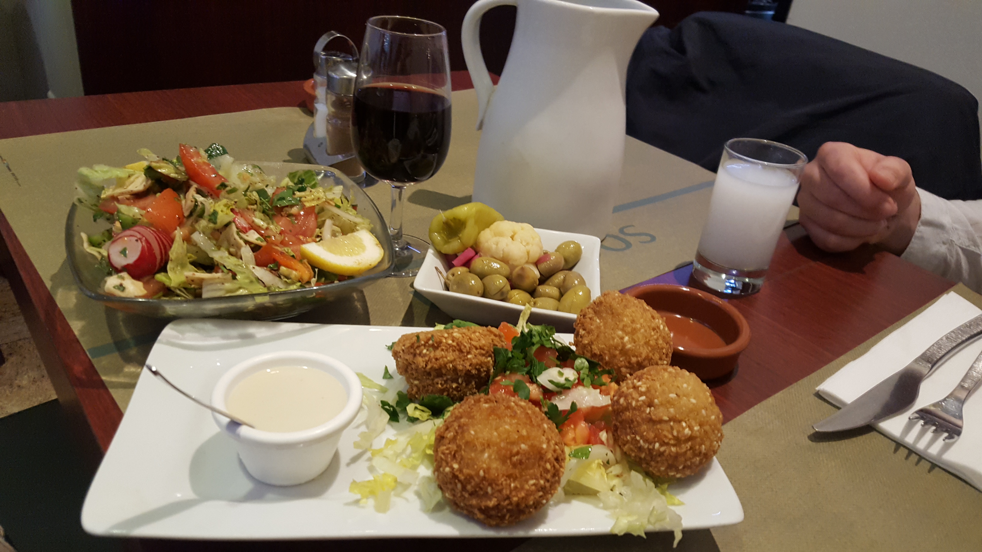 Service correct, personal agréable. La qualité sensorielle est à l'hauteur de ce type de cuisine. Kibbe avec du goût typique menthe verte, poivré, épices cannelle-poivré-gingembre très équilibré. Samboussek et Rikakat typiques aux fromage de chèvre, huile d'olive et menthe verte. Une délice simplement.