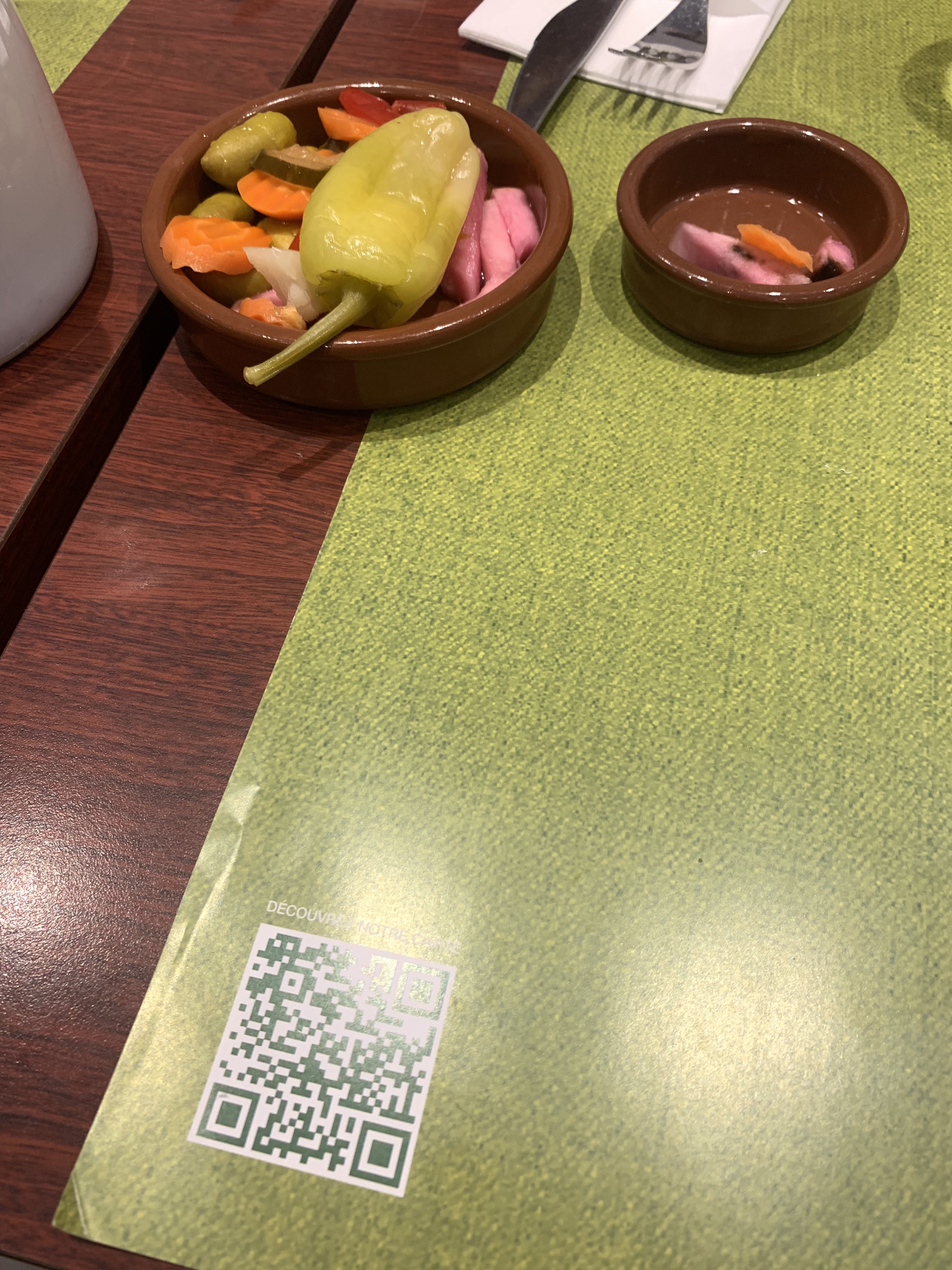 Ce n'est que mon avis mais VRAIMENT DÉÇU PAR CE QUE J'AI PRIS À EMPORTER chez Samaya sans plus la formule Mezzé à emporté à 12.80 € ttc ( même tarif affiché sur leur site quand on mange sur place donc pas de baisse de tva quand on emporte à priori ) Les quantités de hommos taboulé aubergine et.... sont clairement RÉDUITES. 3 friands ( pas de kebbé comme sur la photo ) Cela peut passer sauf quand on sait un kebbé ça nourrit plus que cela qu'on m'a servi. je reste clairement sur ma faim... à mon avis je vais passer chez franprix acheté un sandwich sinon je ne vais pas tenir toute la journée à oui ! Oubli ou pas du restaurant mais pas de couverts en plastique... faut-il les demander je ne saurai pas.. Je ne voulais pas aller chez N...a , la chaine libanaise.... je crois que je vais la tester aussi