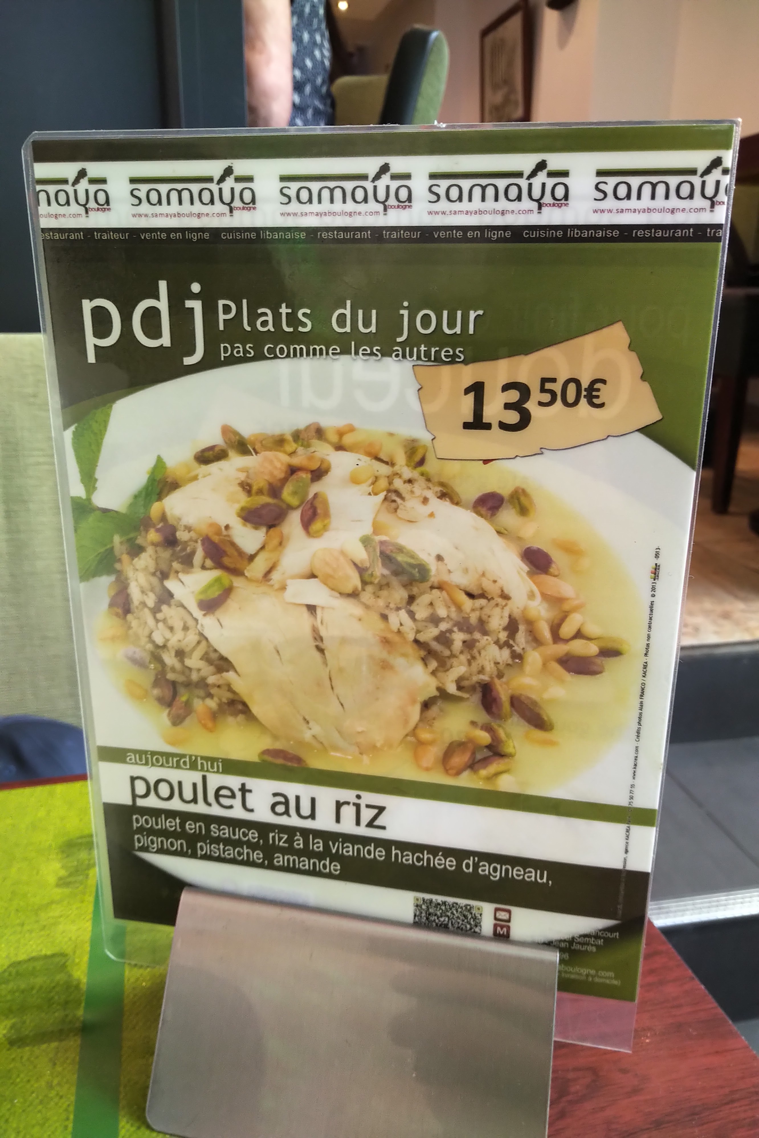 Samaya est un très bon restaurant libanais, vous avez la possibilité de manger sur place ou de prendre à emporter. Il est très bien situé dans Boulogne, tout près des passages et du Pathé, donc on y va souvent avant ou après une séance de cinéma :)