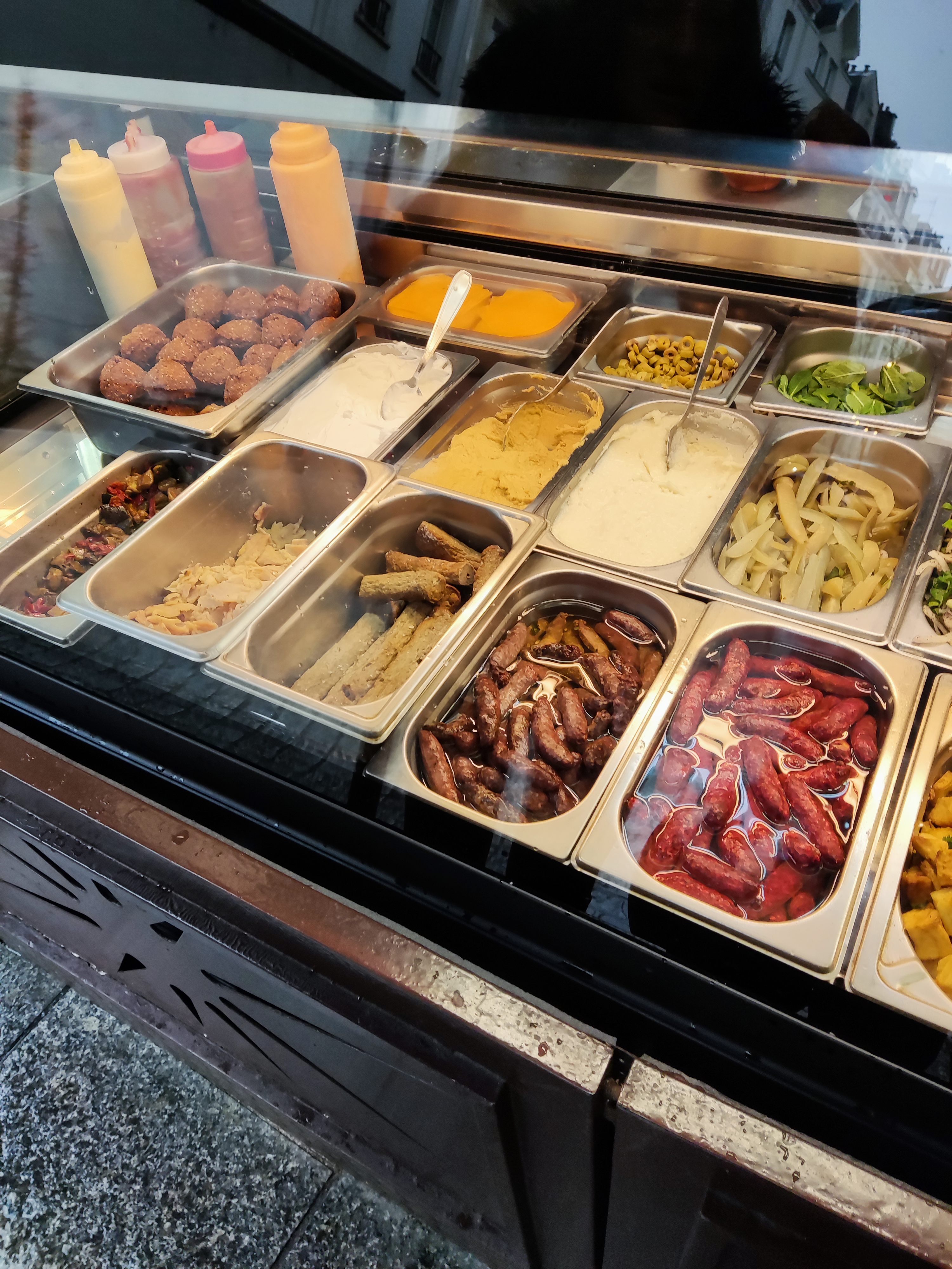 Je mange ici depuis plus de 10 ans et je pense que c'est la MEILLEURE cuisine de rue que vous trouverez à Paris ! Ils ont une excellente saveur, de grandes portions et un excellent emplacement au cœur du Marai. Le personnel n'a pas l'air très sympathique, mais ils font leur travail et ils le font bien. Vous voudrez peut-être partager l'un des sandwichs si vous allez pour un repas léger, ils sont très gros et assez copieux. Passez absolument pour un Spicy (sandwich) avec un Fanta à l'orange ou une bière. Et, en plus, les gens qui regardent sont fantastiques ici !