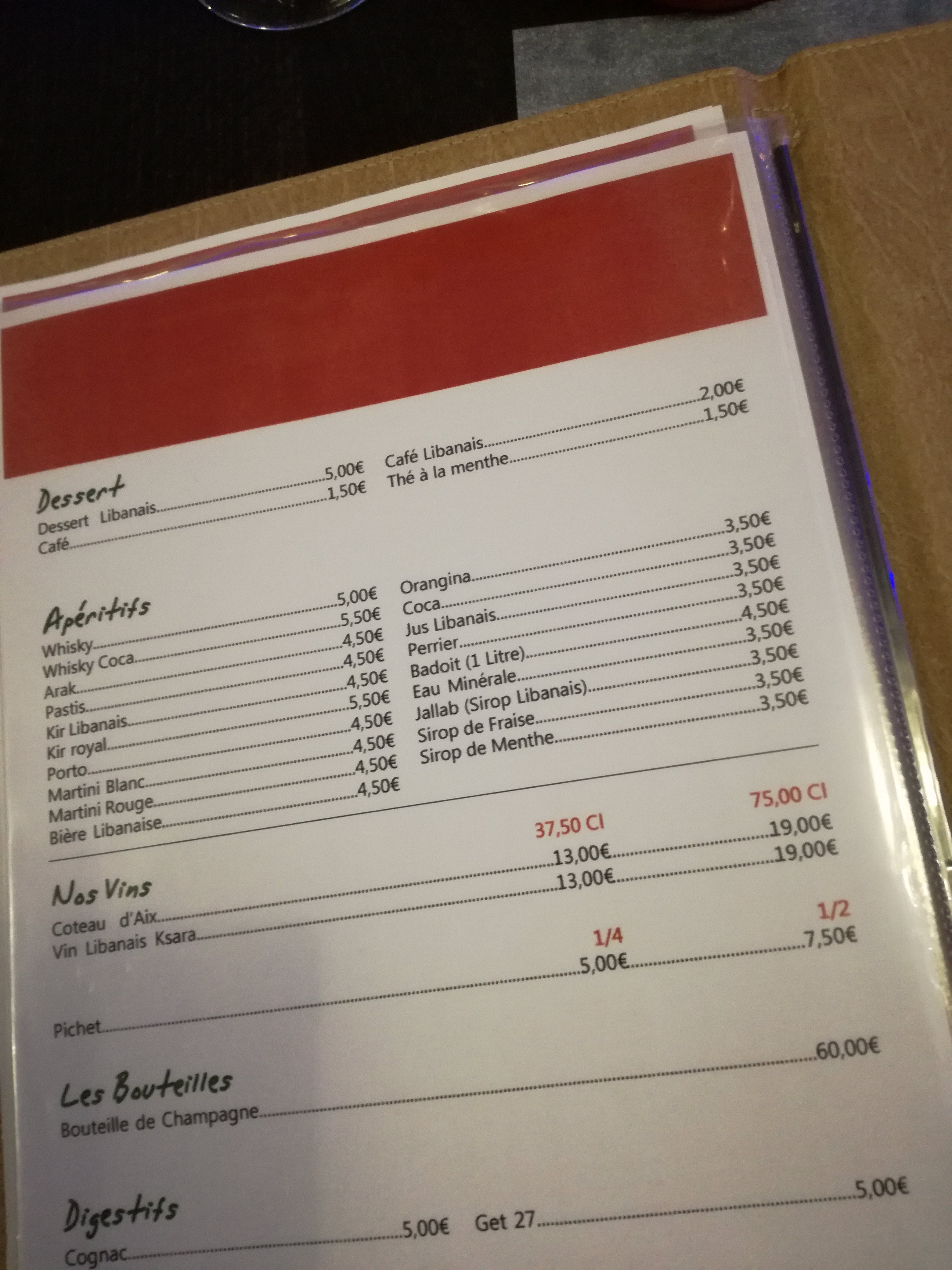 C'est le meilleur restaurant libanais en France. Les plats étaient succulents et très copieux. Le prix est plus qu'abordable au vu de la qualité. Ce restaurant vaut vraiment le détour. Il est fortement conseillé de réserver avant de vous y rendre.