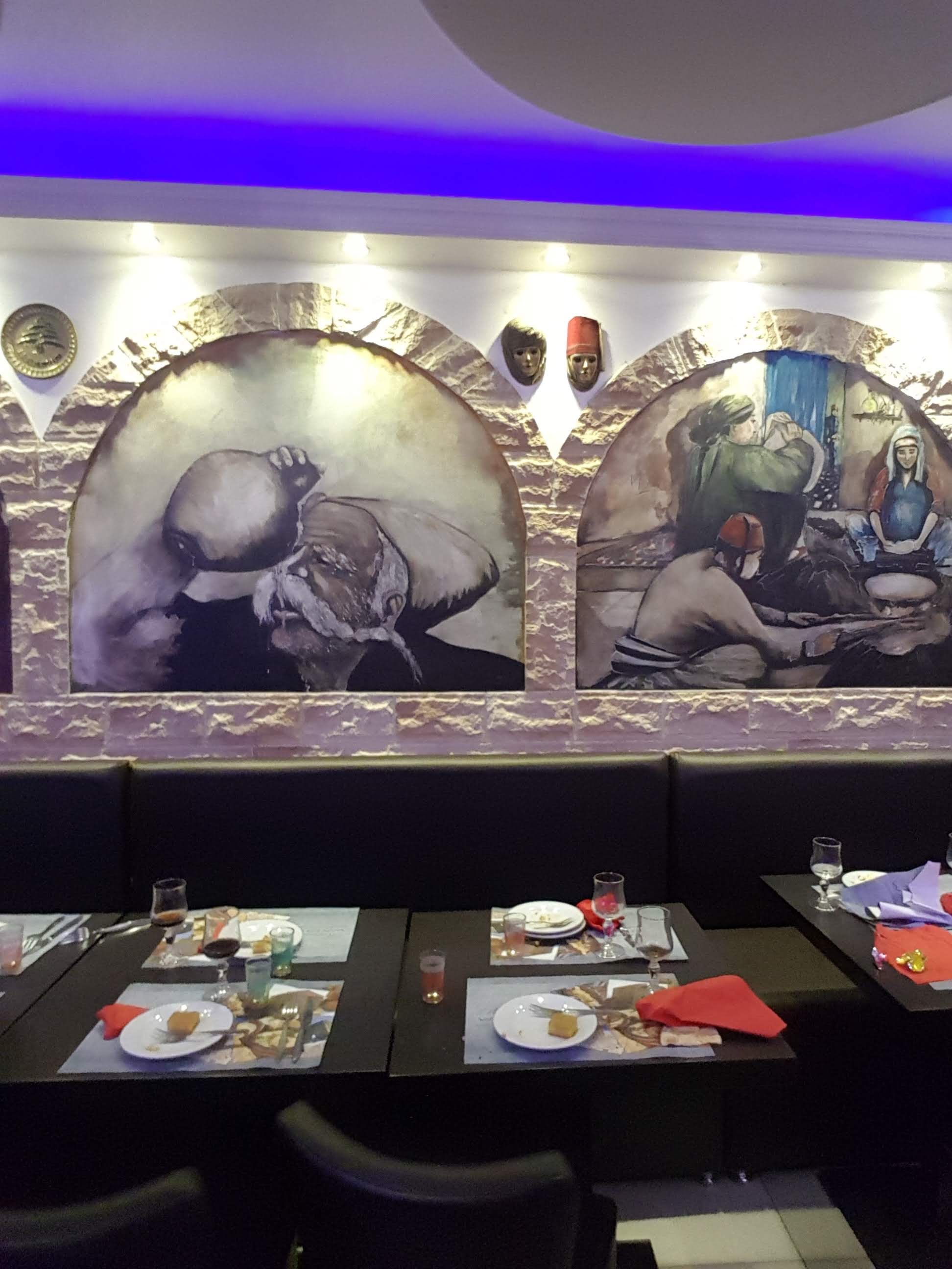 La salle ne paie pas de mine, mais on y mange tellement bien!! Les mézés sont copieux et délicieux. Mention spéciale pour le patron très accueillant, la danseuse et les petits prix! Thé à la menthe et chicha citron conseillés pour bien finir le repas!